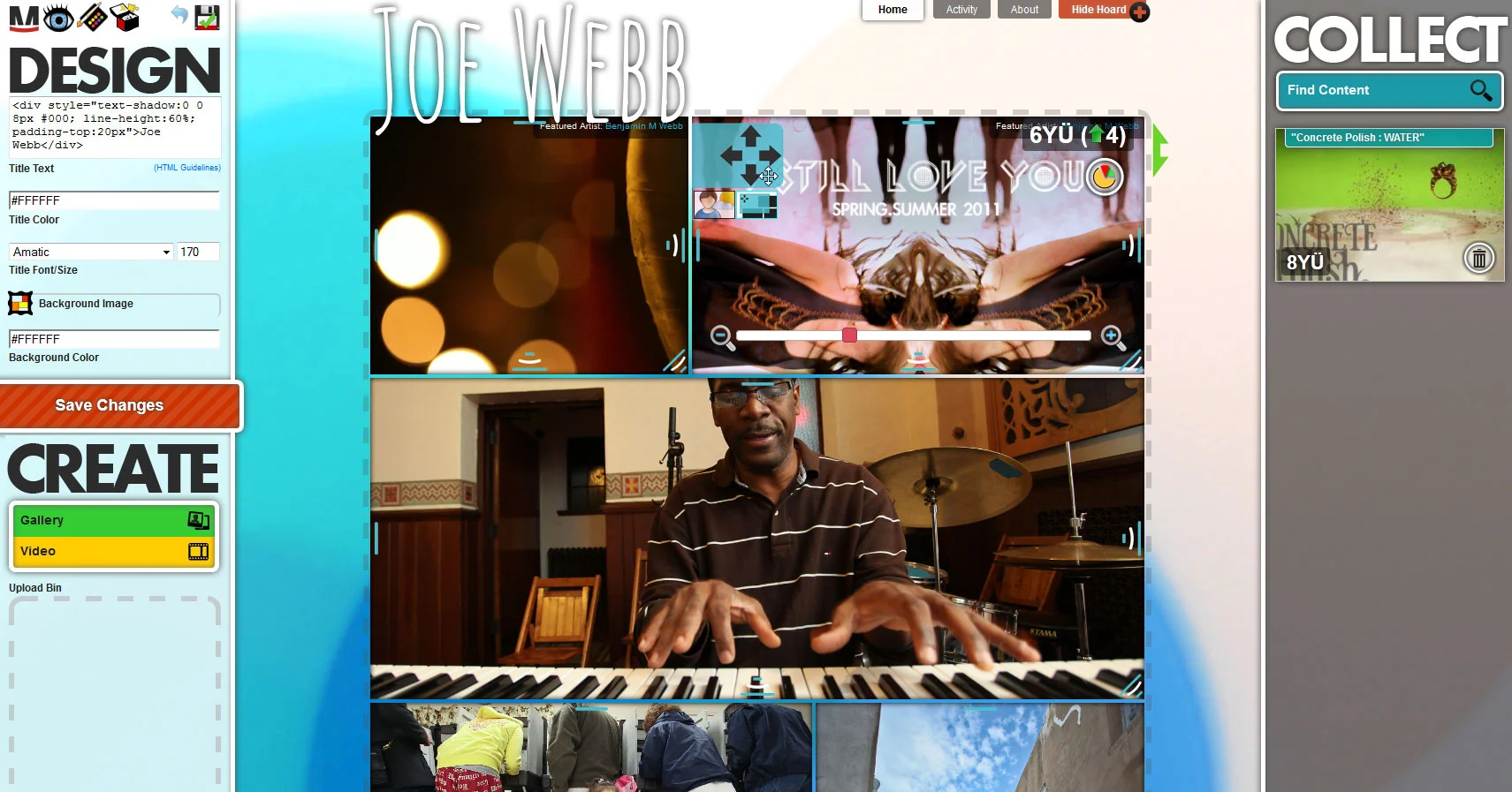 The Mean.to Exchange was a platform for social commerce. The concept was to create a virtual stock market for photos and video. Users could collect their favorite content, and earn money if it became more popular. Users could build a collage-like portfolio of everything they uploaded, and collected, then track it's growth. The portfolio editor was built from scratch, and offered responsive drag-and-drop functionality and endlessly customizable layouts. Check out the video above to for a short demo.